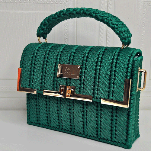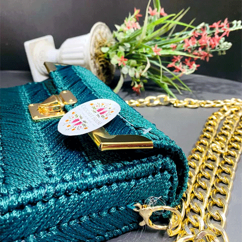 Add a touch of timeless elegance with the Emerald Grace Handbag. Expertly handcrafted in a deep emerald hue, this crochet piece captures sophistication in every stitch. The golden metal accents and chain strap elevate its charm, making it perfect for both casual outings and evening occasions. A true symbol of artisanal craftsmanship — where modern luxury meets handmade beauty.